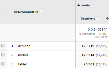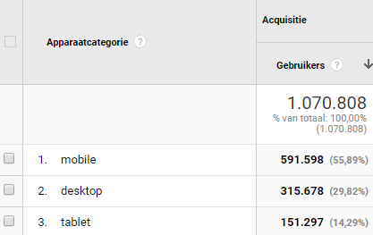Is je website ouder dan 24 maanden? Dan zal deze nog gebouwd zijn in een tijd waarin tablet en desktop leidend waren. Is dat gek? Nee hoor, want in 2017 kwam bij hetzelfde tuincentrum het merendeel van de bezoekers nog binnen via een desktop of tablet: