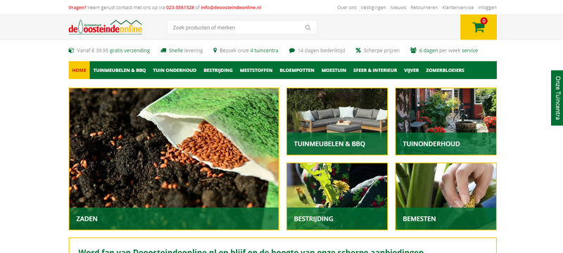 Bij Tuincentrum Osdorp staan het winkelwagentje, de wishlist en inlog voor de klanten netjes rechtsboven op de website.