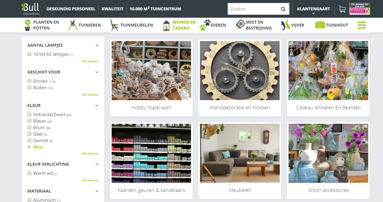 Tuincentrum Bull in Beuningen biedt een doorsnede uit het gehele assortiment in de webshop.