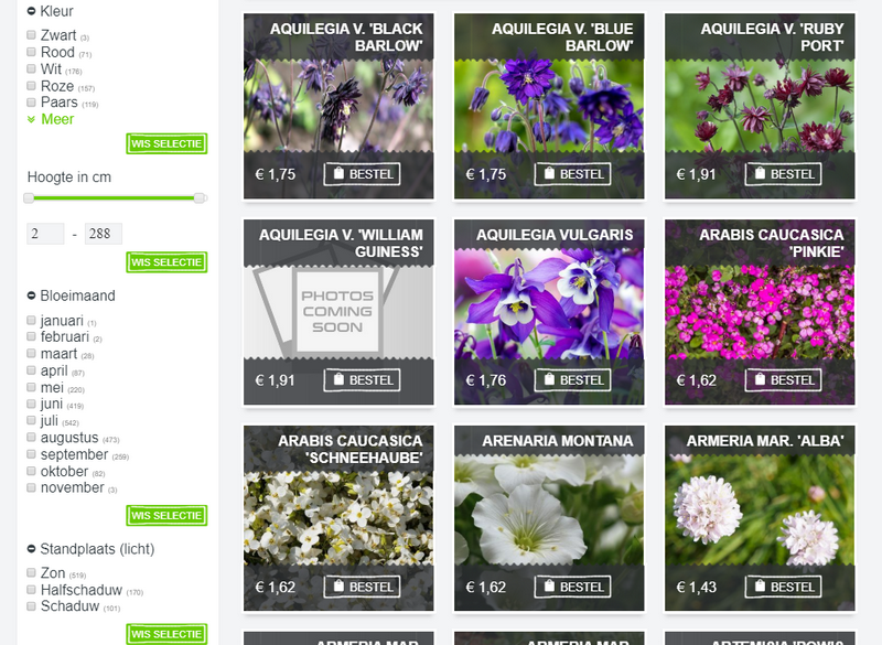 Het merk vermelden we hierbij niet want daarvoor kunnen de filters worden gebruikt. Het gebruik van filters geeft de gebruiker veel meer vrijheid dan wanneer je de categorieën hiervoor gebruikt. In het Garden Connect Platform kan je onbeperkt filters aanmaken. Voor planten kan dat een lange lijst worden, maar je weet vooraf niet waar jouw klant naar op zoek is: