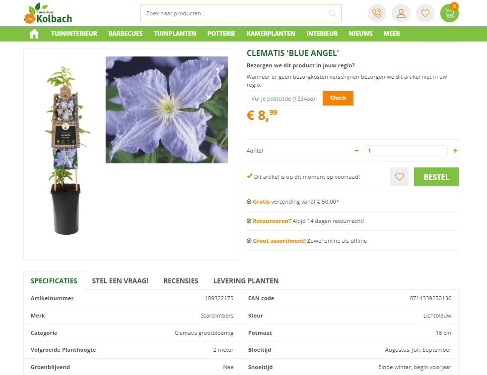 Meer foto’s is altijd beter, maar je moet minimaal 1 foto hebben op witte achtergrond. Bij planten helpt het om daarnaast foto’s te hebben die een indruk van de sfeer geven.