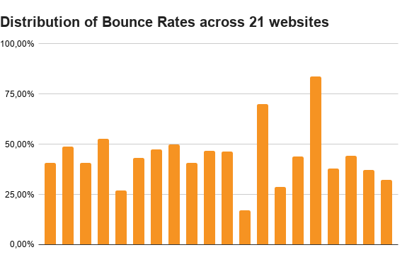 We hebben onderzoek verricht onder 21 Analytics accounts van onze klanten in 4 verschillende landen, zodat we een idee kregen van het gemiddelde bouncepercentage: