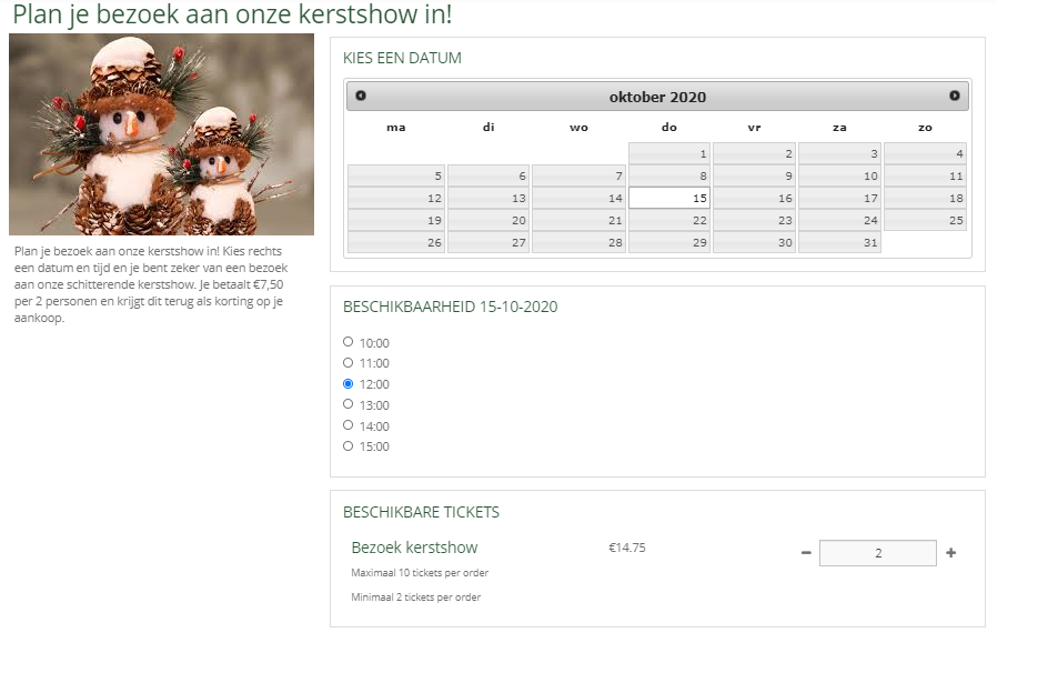 Het maken van reserveringen voor horeca is in Nederland al verplicht, maar je kunt ook voor je kerstshow online reserveringen aanbieden. Zo voorkom je teleurstellingen bij klanten én je kunt het gebruiken om de aanloop te spreiden.