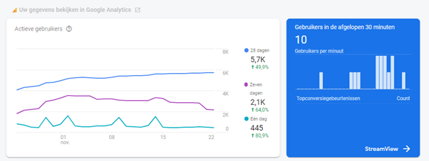 Je kunt vervolgens doorklikken naar het overzicht van actieve gebruikers: