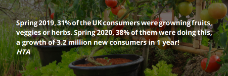 Volgens de HTA zijn maar liefst 3,2 miljoen consumenten begonnen met het verbouwen van hun eigen fruit, groenten en kruiden in 2020. In Nederland is een gelijksoortige trend gaande, die een aantal jaar geleden begon door een campagne die zich richtte op kinderen. Hierin overtuigden kinderen hun ouders om hun eigen groenten en fruit te verbouwen. Dit resulteerde in hogere verkoop van alles dat te maken heeft met het zelf verbouwen van eten: van zaden tot aan kleine kassen.