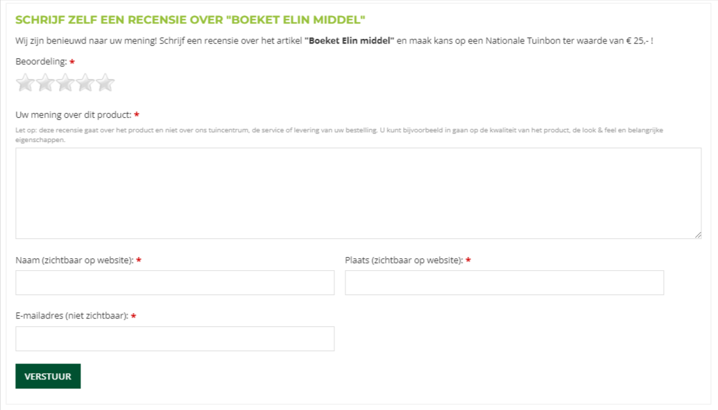 Een hele andere categorie recensies zijn de productrecensies. Deze zijn vooral handig voor bezoekers in jouw webshop die een aankoop willen doen. Recensies van andere consumenten die het product gekocht hebben zijn heel nuttig en vaak ook overtuigend.