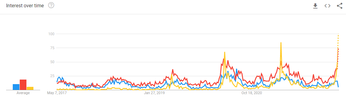 Welke conclusies kun je hieruit trekken? Allereerst valt het op dat Grill Guru tot 2020 de kleinste van de drie is, maar zij hebben wel de hoogste piek in zoekvolume in het voorjaar van 2020 en 2021. Ook zie je dat de zoekopdrachten in Google naar de Big Green Egg in 2021 nauwelijks boven 2019 uitkomt wat raar is, want 2021 was natuurlijk een bijzonder goed jaar.