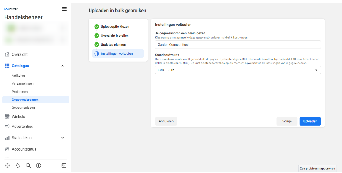 Tenslotte geef je je feed een handige naam mee en stel je de valuta in op Euro: