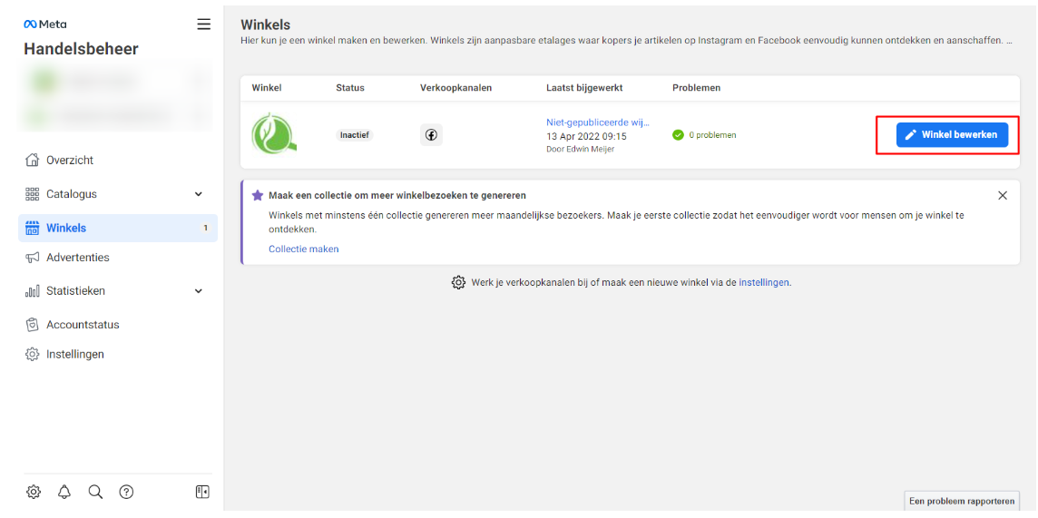 Ga naar Winkels en bewerk de winkel die je net hebt opgezet: