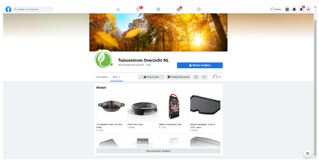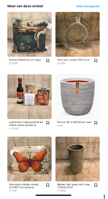 Deze functies zijn beschikbaar via de websites en apps van Facebook en Instagram. Hieronder staat een voorbeeld van de Instagram shop van GroenRijk Zevenaar: