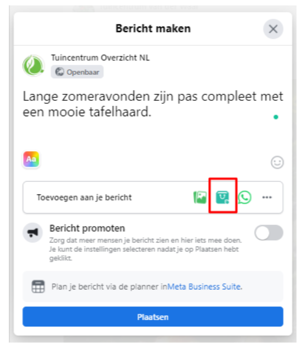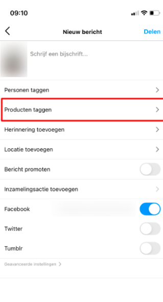 Als je nu een bericht gaat plaatsen kun je ervoor kiezen om producten te taggen: