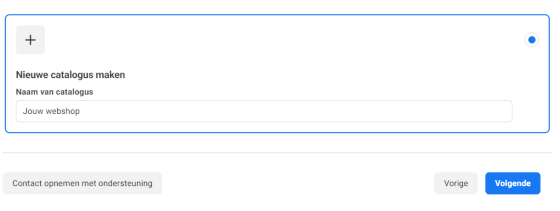 In de stap daarna moet je een catalogus koppelen of aanmaken. Waarschijnlijk heb je dit nog niet gedaan of wil je opnieuw beginnen, dus kies voor “Nieuwe catalogus aanmaken”: