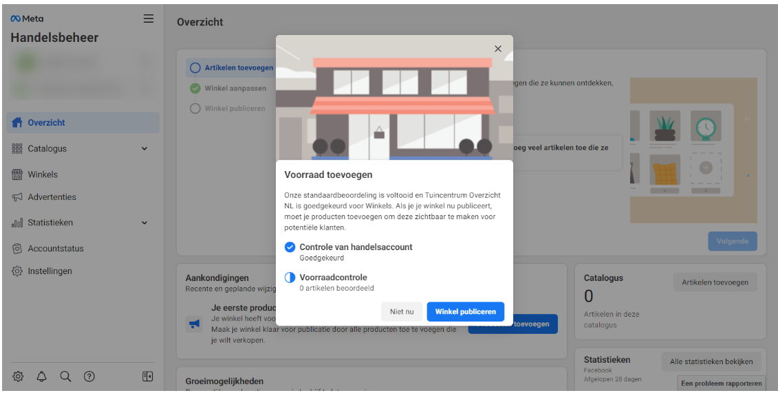 Het aanmaken van je shop kan een minuutje duren en daarna kom je vanzelf in op de pagina Handelsbeheer terecht: