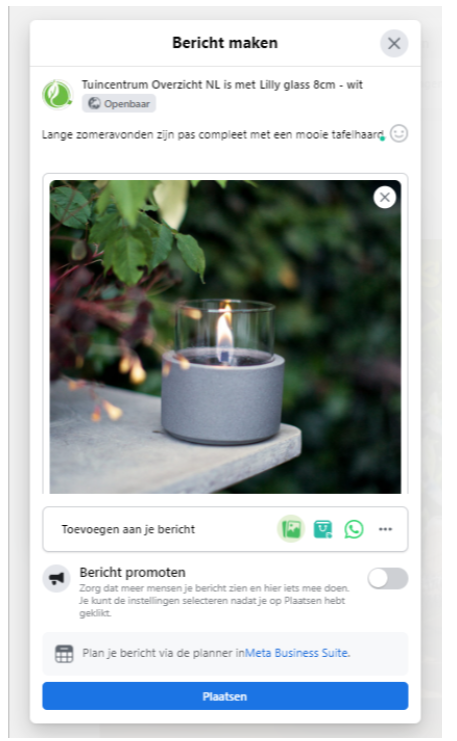 Zodra je klaar bent kun je het bericht posten op je Facebook pagina: