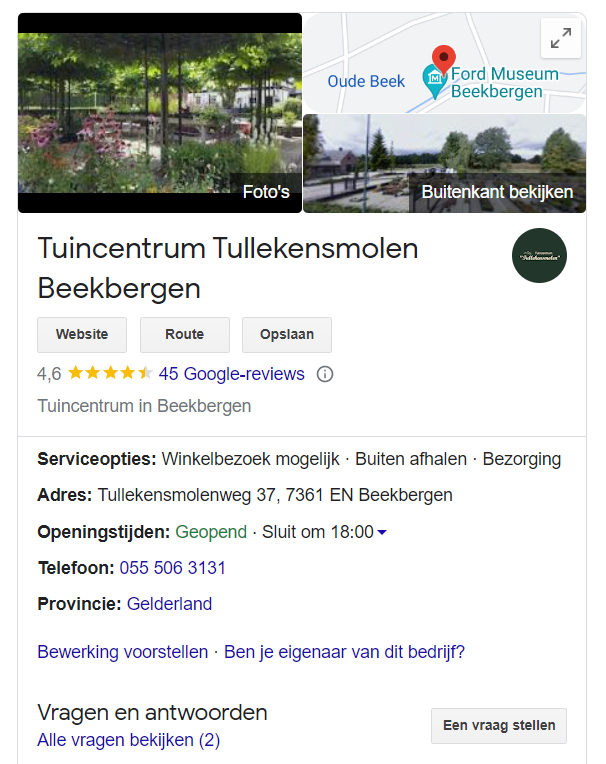 Is het toevallig dat tuincentrum Tullekensmolen op 1 staat met “tuinplanten Apeldoorn”?
