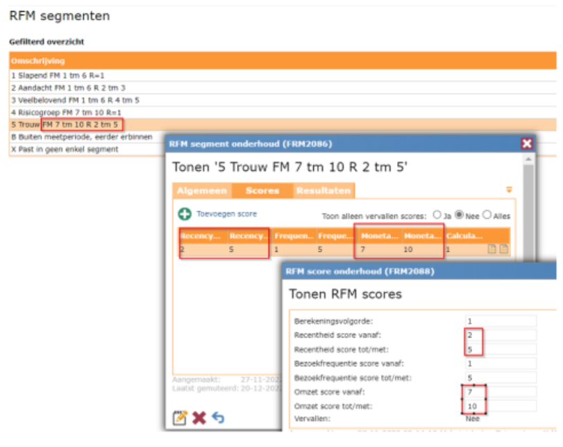 Het RFM-model kan ingesteld worden in RetailVista, ervan uitgaande dat de juiste modules geactiveerd zijn. Binnen RetailVista kun je de puntentelling per factor instellen waarna iedere dag de segmentatie bepaalt wordt voor al je klanten. Daarbij wordt gebruik gemaakt van de 95-percentiel methode om uitschieters uit het model te filteren.