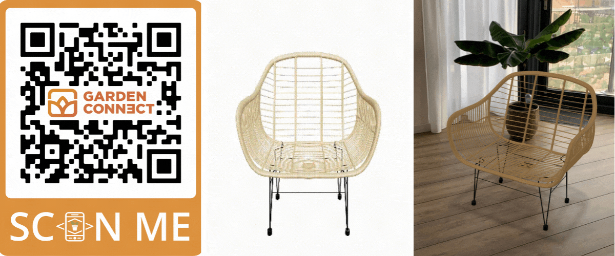 Wil je zelf ervaren hoe de AR Shopping tool werkt? Open deze link of scan de QR-code en kom erachter hoe onderstaande stoel in jouw woonkamer of tuin staat.