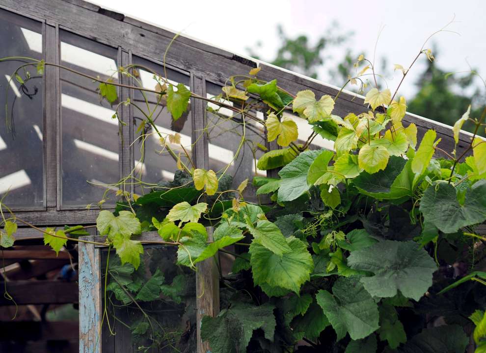 En een foto van de druivenplant die aan het klimmen is tegen een wand: