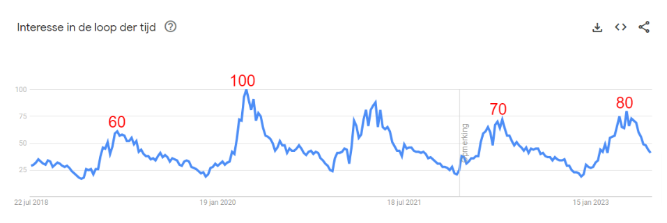 Waar menigeen denkt dat de vraag naar planten na Covid-19 is ingezakt, valt dat reuze mee. Natuurlijk is de vraag naar planten in Google minder hoog dan in maart & april 2020, maar wist je dat de vraag in 2023 ruim 30% hoger ligt dan in 2019? En dat het aantal zoekopdrachten rondom planten in Google in 2023 ruim 10% hoger is dan in 2022?